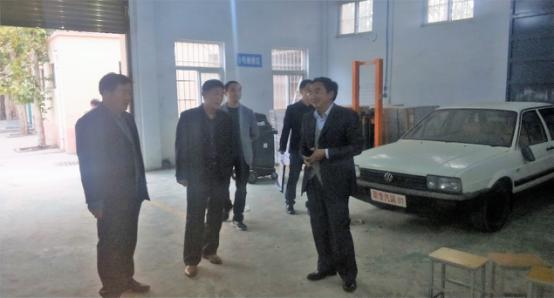 谢书记向来客介绍汽车运用与维修专业实训基地建设情况