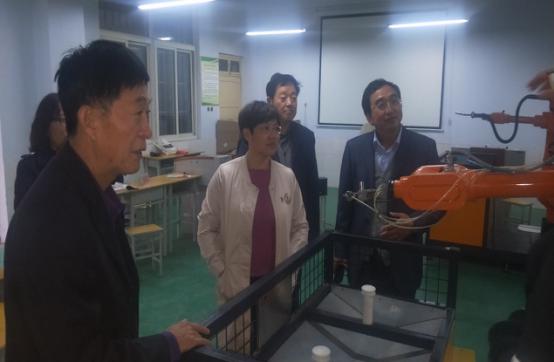 接着,与会人员参观了县职业中专汽车运用与维修专业实训基地、工业机器人应用与维护专业实训室、机电技术应用专业实训基地。河南省环宇教育集团有限公司一行4人对县职业中专服装专业学生为全校学生设计制作校服、机电技术应用专业为企业代加工轴套、汽车运用与维修专业学生对汽车钣金喷漆等生产性实训大为赞赏,认为县职业中专在专业发展、校企合作、工学结合、产教融合等方面走到了区域职业教育的前列,表达了浓厚的校企合作意愿。