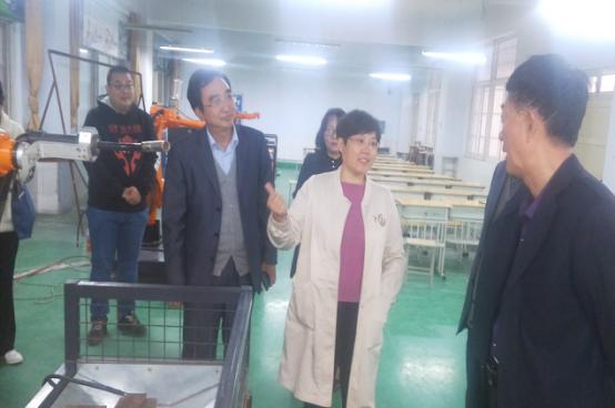 刘鹏鹏副校长向刘为伶副县长介绍机电技术应用专业实训基地建设情况