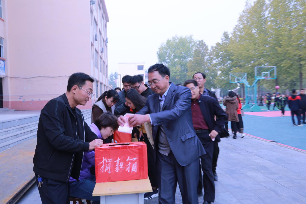 捐款仪式上,在校领导的带领下,全体教职工都积极行动起来,投入到这场爱心汇集活动中,30 , 50,100,200…… 一份份善款源源不断被放进捐款箱,短短1个多小时,捐款高达8700余元。