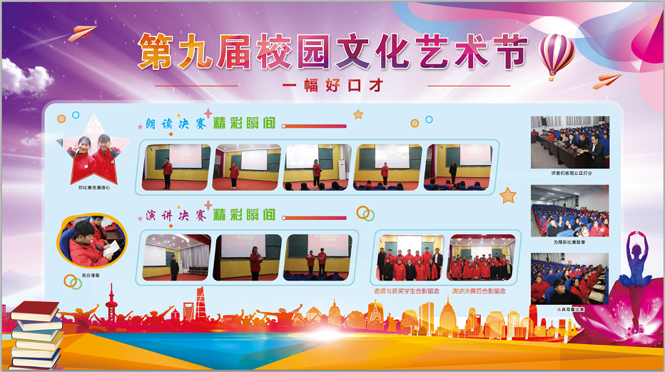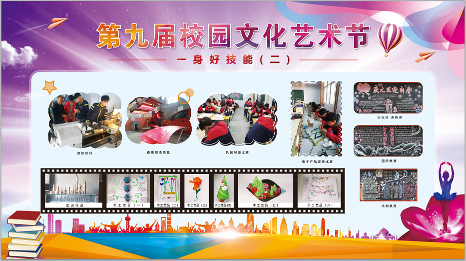 为丰富校园文化生活,营造积极向上、健康文明的校园文化氛围,培养健康的审美情趣和良好的艺术修养,进一步推进“五个一”校园文化建设,提高学校办学品位,11、12月,威尼斯官网举行了第九届校园文化艺术节。文化艺术节的口号是“职专大舞台,有才你就来”,活动主题是“多彩校园,放飞梦想”。本次文化艺术节,体现威尼斯官网“三风一训一精神”,特别是要彰显“五个一”校园文化,有5大类12个子项目:一个好身体(“强健体魄团队创优”广播体操比赛,“点燃激情驰骋赛场”篮球、乒乓球比赛,“增强体质展我风采”立定跳远、铅球、100米跑、800米(女)跑、1000米(男)跑比赛,“走进传统合作共赢”跳绳、拔河、托球跑、十人九足比赛),一副好口才(“发自肺腑流露真情”国学经典朗诵、演讲比赛),一笔好字(“传承国粹写意人生”书法比赛,“七彩阳光照亮青春”黑板报、征文、手抄报比赛),一身好技能(“练就技能成就梦想”专业技能比赛,“青春飞扬艺术奔放”文艺表演比赛,“古今中外尽在笔下”绘画、公益广告比赛,“心灵手巧风采流露”摄影、贺卡制作、手工艺品制作比赛),一个好人品(“铸就人品感动校园”人物评选)。