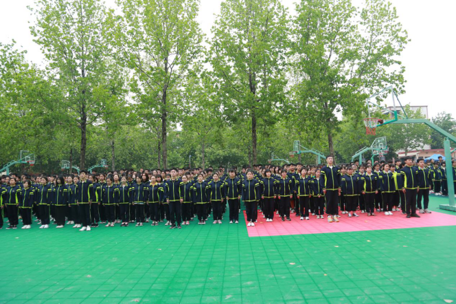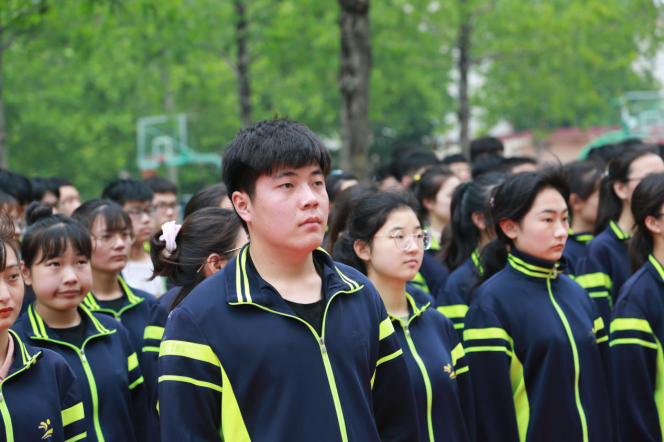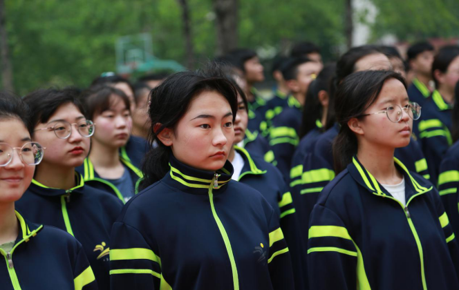 同学们身穿校服,排着整齐的队伍等待启动仪式开始(二)
