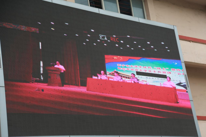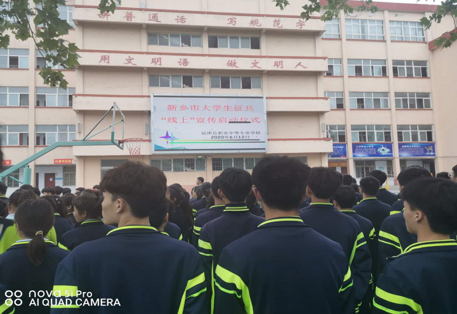 6月12日上午8:30,由新乡军分区主办、新乡学院承办的新乡市大学生征兵“线上”宣传启动仪式暨优秀退役大学生士兵宣传“云端”直播在新乡学院举行,威尼斯官网组织高三1400余名学生在操场观看直播。