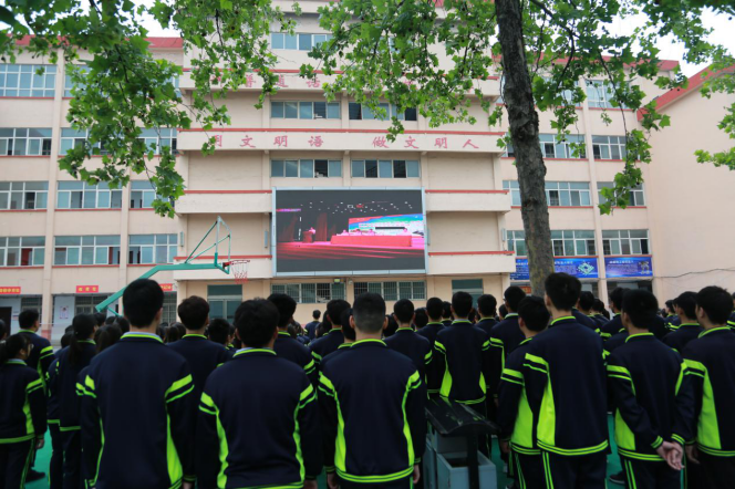 上午8:00,高三全体学生早早在操场集合,等待新乡市大学生征兵“线上”宣传启动仪式暨优秀退役大学生士兵宣传“云端”直播。