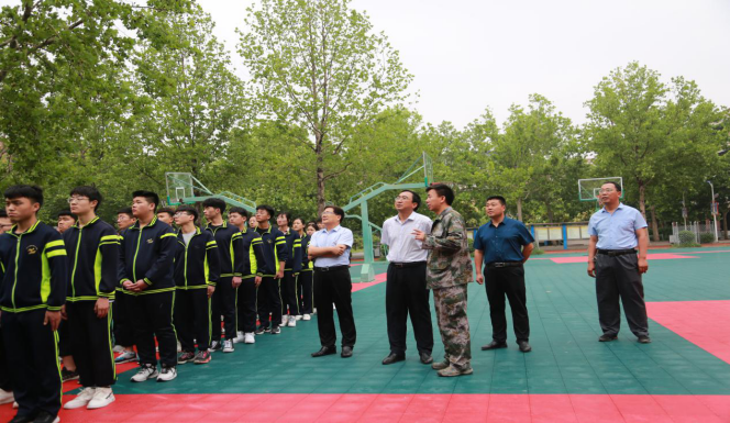 谢书记指出:作为全国国防教育示范学校,我们始终把国防教育作为学校教育的一个重要组成部分,通过多种形式、多个渠道开展国防教育,让同学们学习军人作风,感悟军人情怀,把军人吃苦耐劳、保家卫国的精神带到学习和生活中去,今年仍然要积极发动学生参军入伍、报效祖国。
