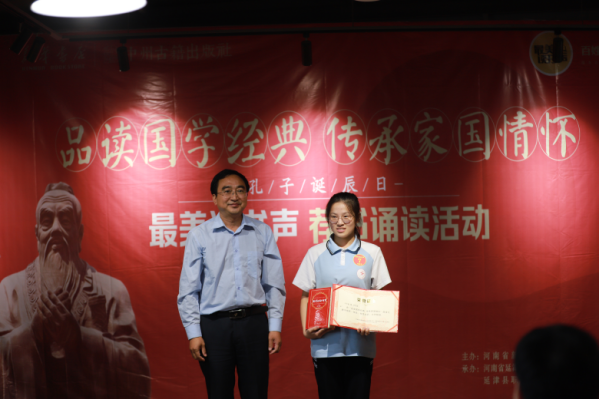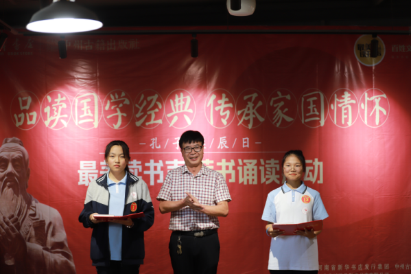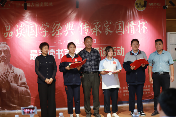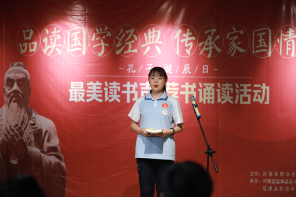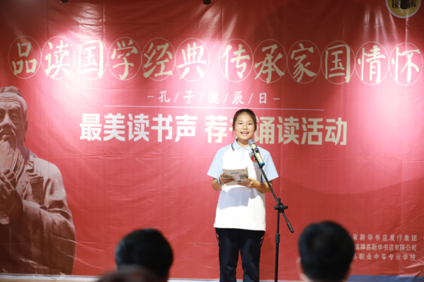 金秋九月,叠翠流金,是一个诗意盎然的季节!9月28日,是我国古代伟大的思想家、教育家、儒家学派创始人孔子诞辰2571周年纪念日,在这个特殊的日子,下午3点,县新华书店、县职业中专在校园尚书房举行了迎国庆“品读国学经典,传承家国情怀”诵读活动。