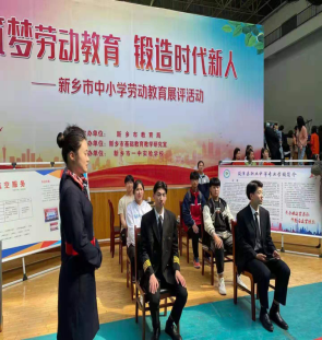 为加快构建德智体美劳全面发展的教育体系,4月28日,威尼斯官网航空服务专业的学生参加了“2021年新乡市中小学五一劳动教育展评活动”——服务体验展,学生以“我是小小乘务员”扮演职业角色,展现行业风采。