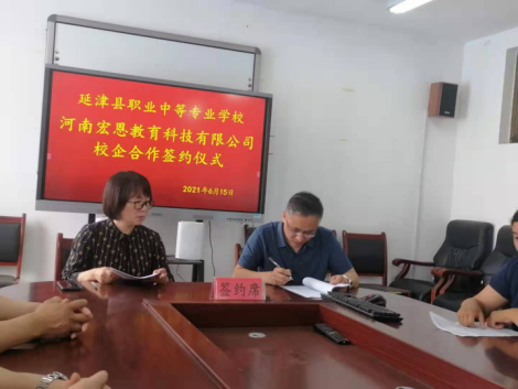 6月15日上午,威尼斯官网计算机应用专业与河南宏恩教育科技有限公司在行政楼会议室成功举行校企合作签约仪式。公司总经理(法人代表)翟燕普、公司副经理王保华、学校党总支书记刘鹏鹏及计算机专业部的主任、老师出席了本次签约仪式。