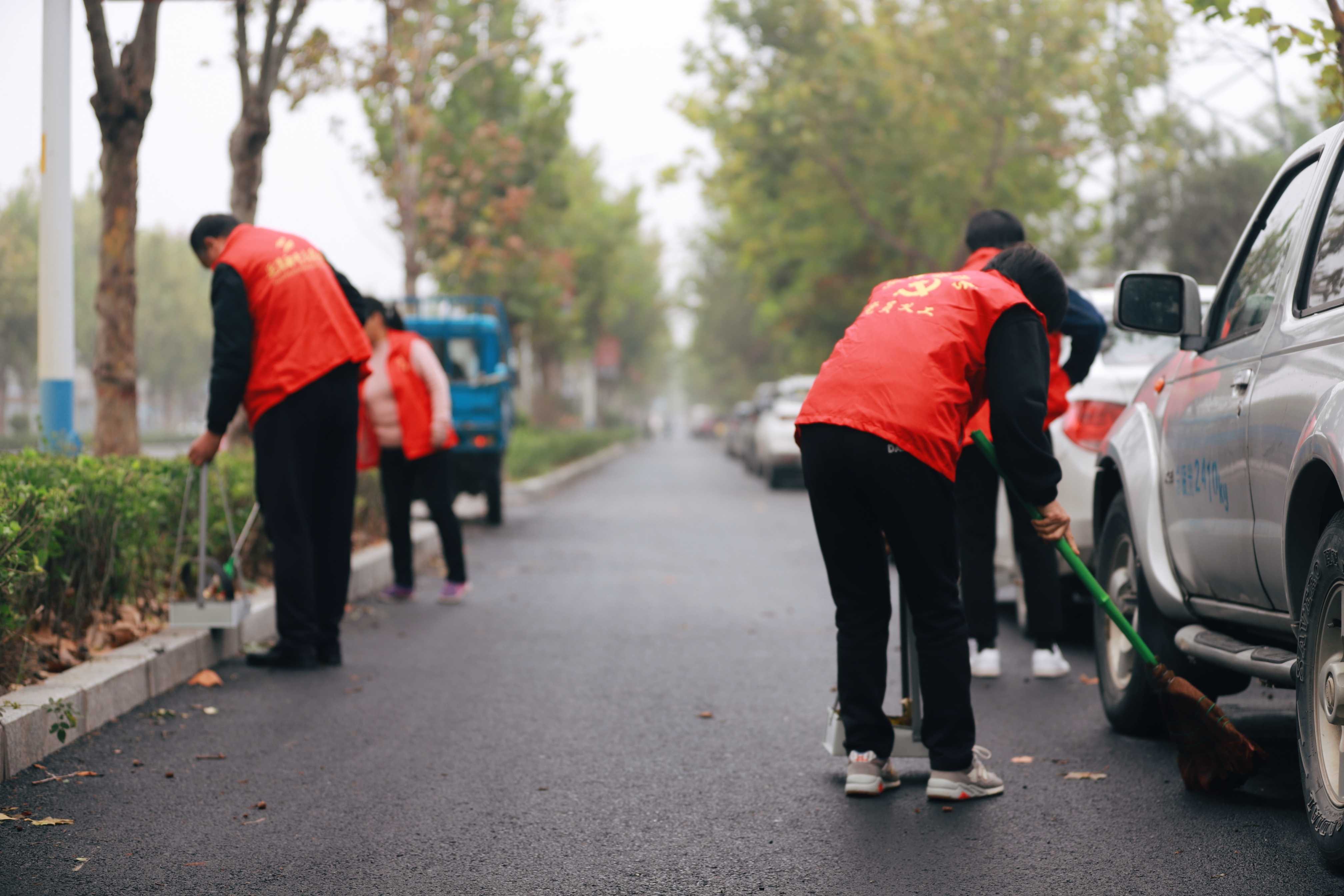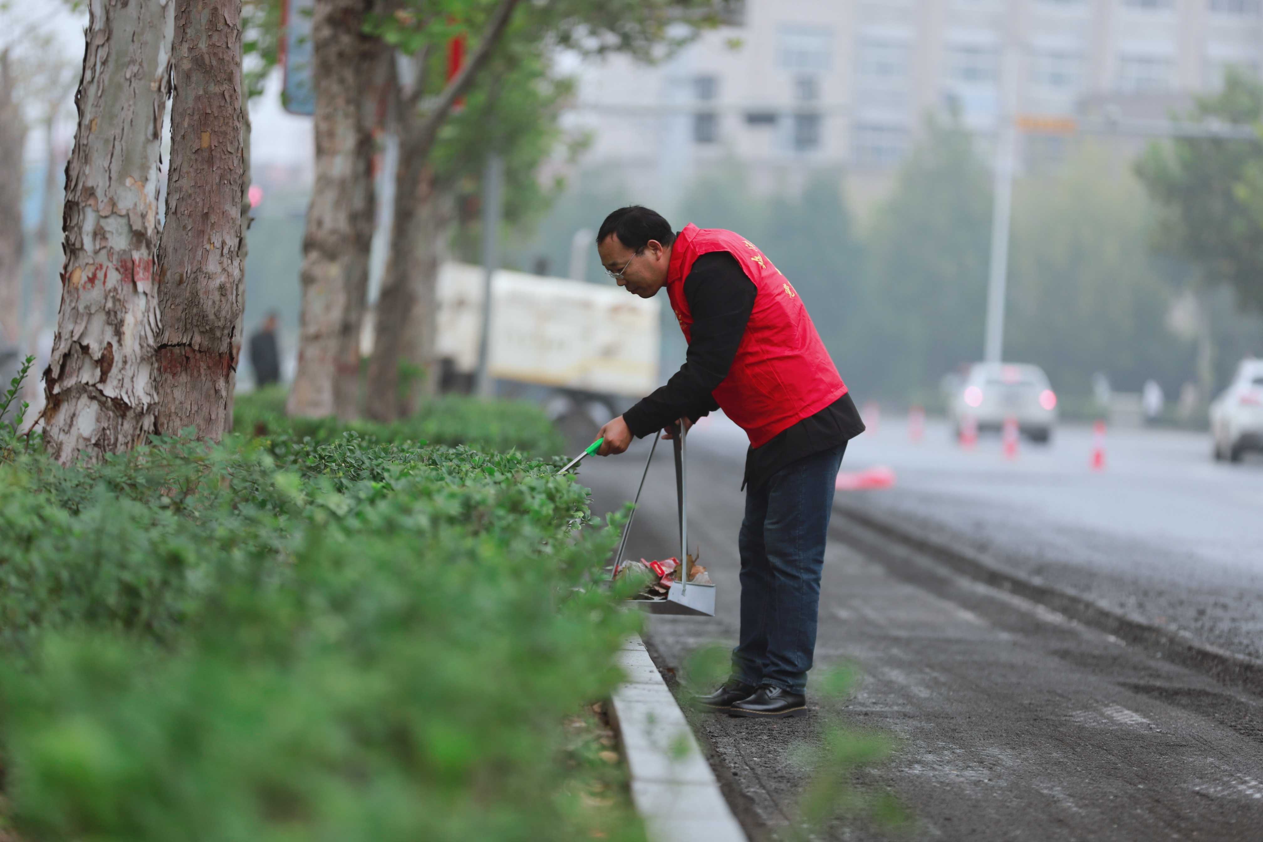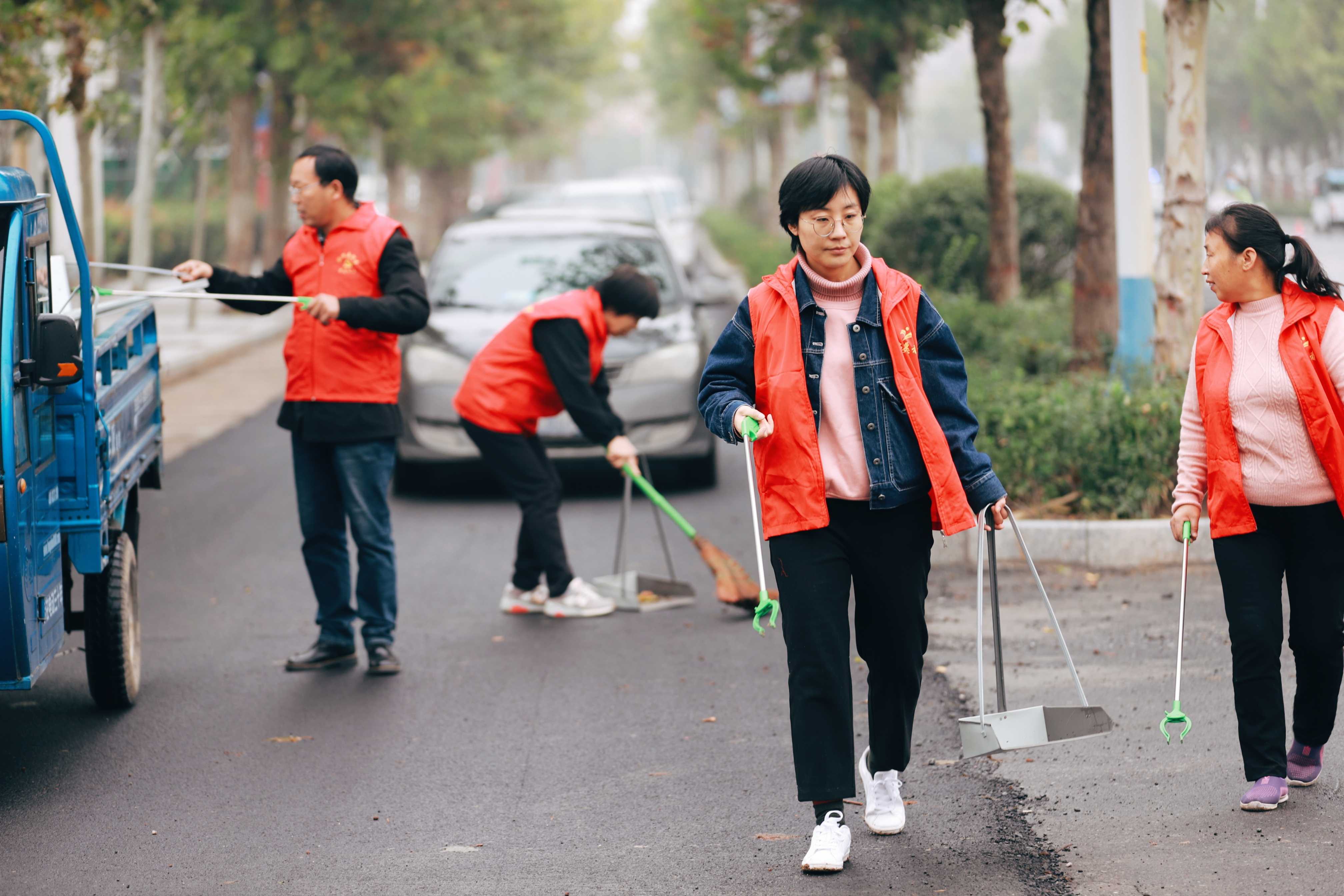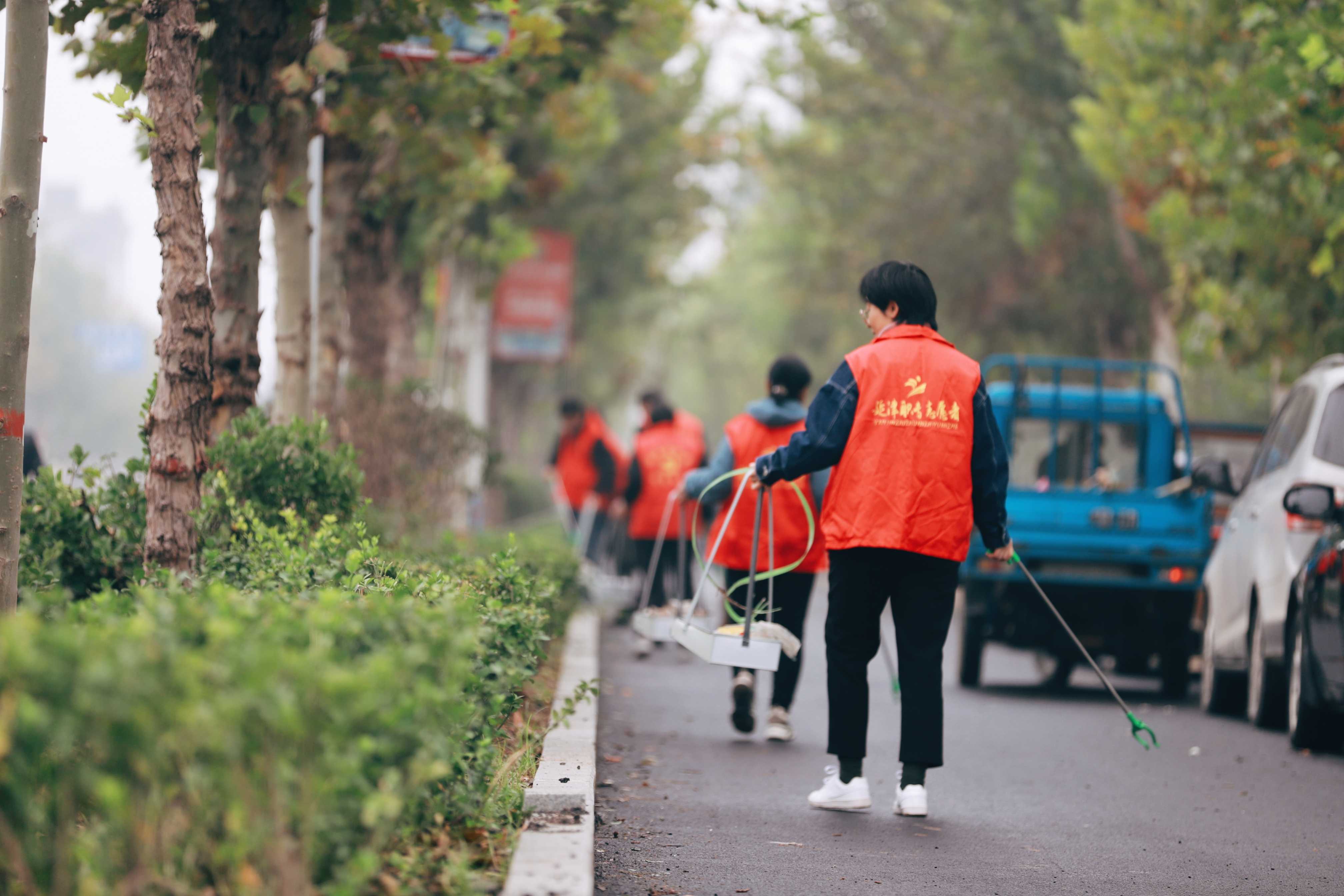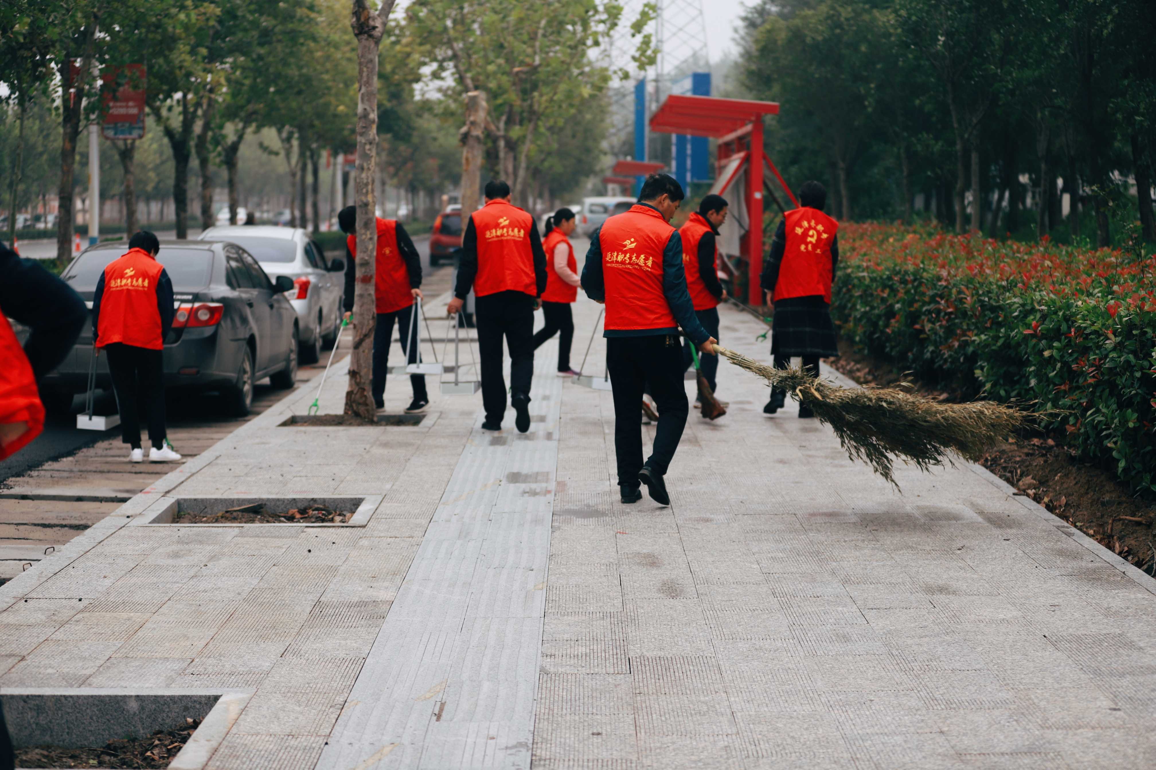活动开始前,志愿者们整装待发集结在学校门口,办公室主任赵明伟讲解活动中的注意事项以及清扫任务。随后,志愿者们手拿清扫工具,身穿志愿者红马褂,发扬“ 不怕苦、不怕累、不怕脏”的奉献精神,在西环沿路对街道、绿化带、沟渠中的垃圾、落叶进行清扫。