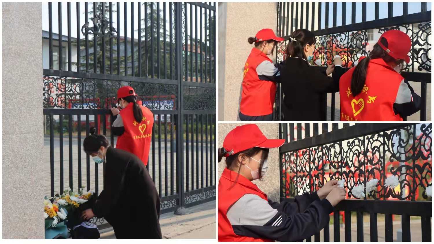 在烈士陵园门口进行了简单的祭扫活动,学生们将自己亲手制作的小白花别在烈士陵园的门上,以特殊方式来感念烈士们为国为民的情怀,向英烈致敬!