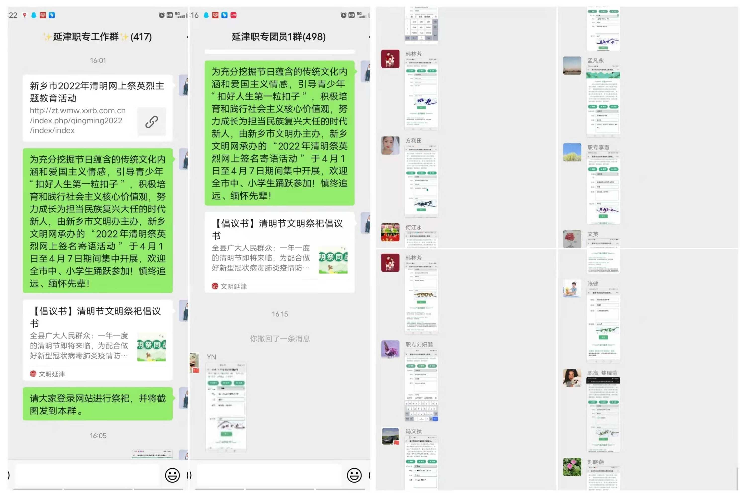 为充分挖掘节日蕴含的传统文化内涵和爱国主义情感,引导青少年“扣好人生第一粒扣子”,积极培育和践行社会主义核心价值观,努力成长为担当民族复兴大任的时代新人,威尼斯官网于4月2日组织全体师生进行“2022年清明祭英烈网上签名寄语活动”,师生们积极参与网上文明祭祀活动,慎终追远、缅怀先辈!