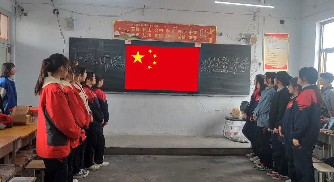 仪式第一项:唱国歌。师生起立,大声唱出对我们伟大祖国的感恩与热爱。