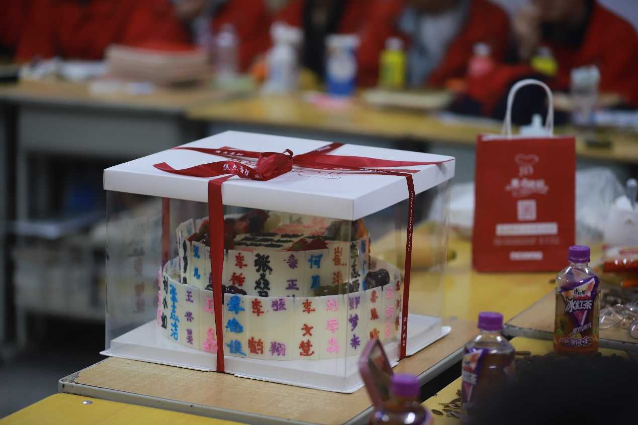 仪式第四项:用蛋糕庆祝我们共有的十八岁。青春最幸福的时刻还是接过平时严厉的老师亲手切给我们的蛋糕。