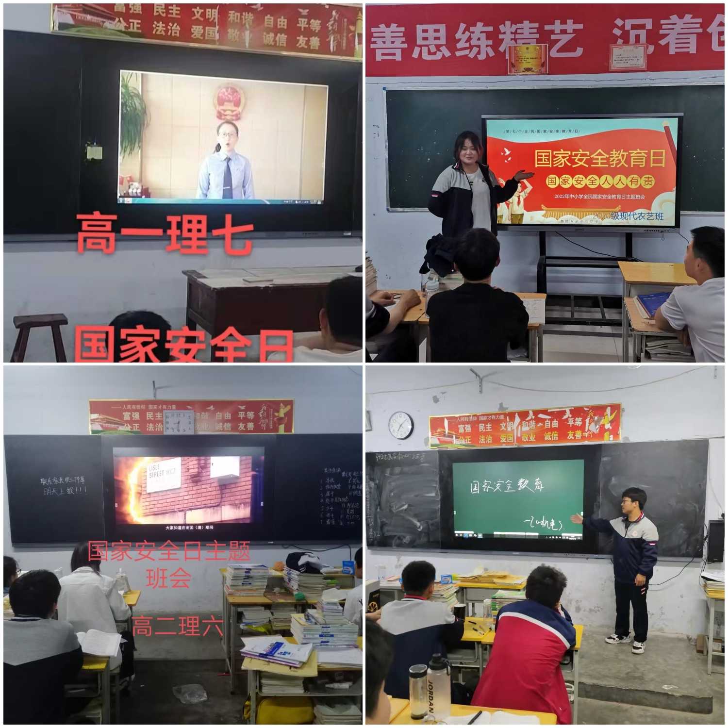 4月10日,各班组织以“国家安全教育”为主题的班会课。班主任通过网络宣传、播放PPT等方式给学生们详细讲解了全民国家安全教育日的来历以及什么事国家安全、如何维护国家安全、危害国家安全的行为表现等相关知识。