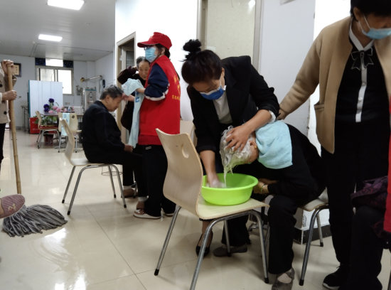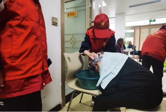 “爷爷奶奶好,今天是重阳节,我们来给您送祝福来啦!”一进门,志愿者们热情地和老人们打招呼,送上节日问候和祝福。校团委代表学校为养老院的孤寡老人送去了慰问物品,详细询问老人们的身体情况和生活状况,并嘱咐老人们,天气转凉要注意身体、保持良好的心情。接着我们结合养老院的负责人开展了为老人洗头、洗脚、剪指甲、整理内务、陪老人看电视、聊天等活动,肖思远服务队的每位队员都积极行动起来。