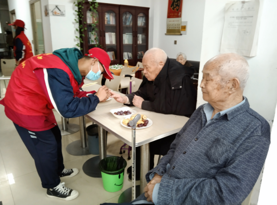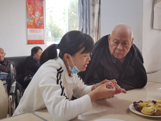 志愿者们积极开展活动,养老院的爷爷奶奶们看到我们的到来高兴的合不拢嘴,一位老爷爷开心的说:“你们来看我们,应该我们给你们准备些东西,这反倒是你们带这么多水果来看我们,还给我们剪指甲、洗头、陪我们说话聊天,这让我们怎么感谢你们呢。”还有老人分享了他过去的经历,并对志愿者们说:“你们要好好读书,长大了以后成为祖国的栋梁,保家卫国,为祖国做贡献。”欢声笑语中,小小的公寓充满大大的温暖。