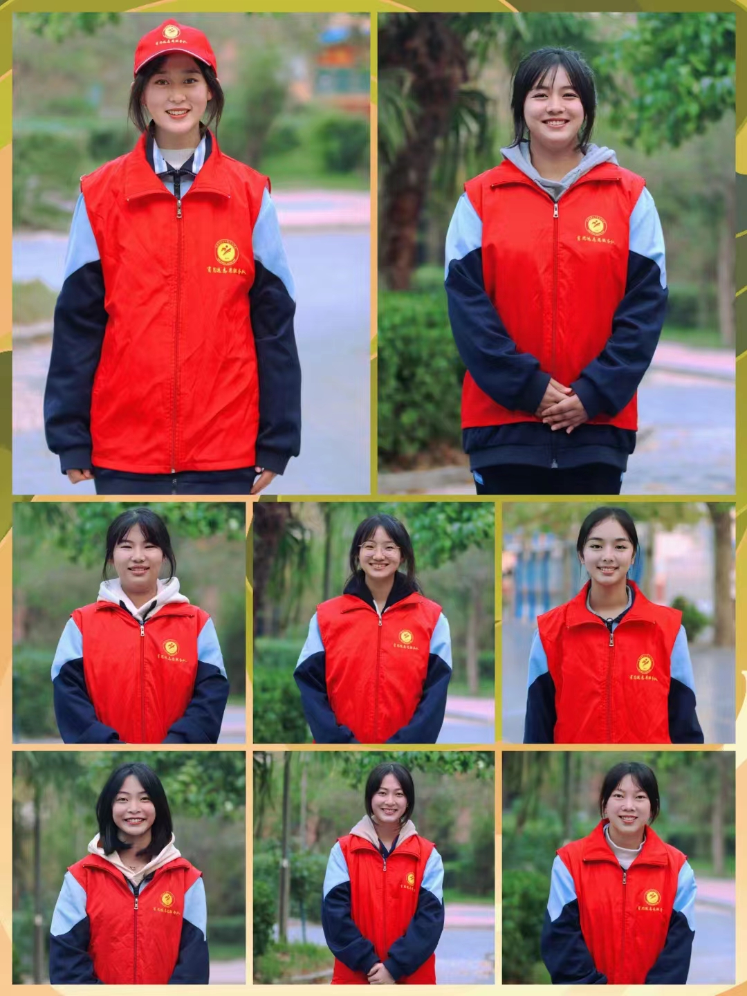 也许,你不知道他们的名字,但你肯定会记得那一张张笑脸。那一张张笑脸,那样自信、那样美丽、那样灿烂,给这明媚的校园增添了无限的色彩!