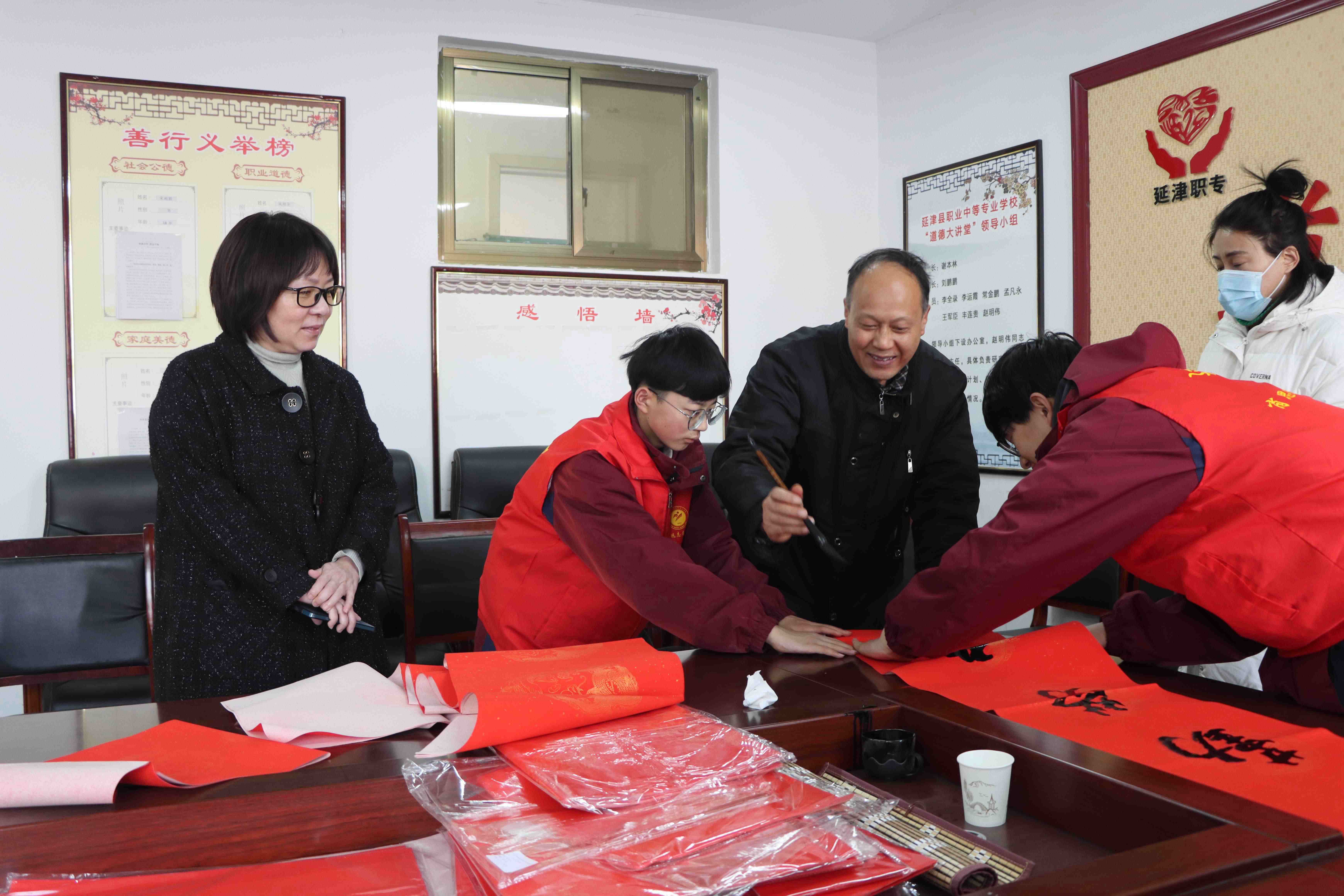 延津职专党总支书记刘鹏鹏同志、副校长常金鹏同志先后来到现场指导视察工作,令我们倍感振奋,倍受鼓舞。领导们看着一幅幅刚出炉的春联,感觉年味儿十足。