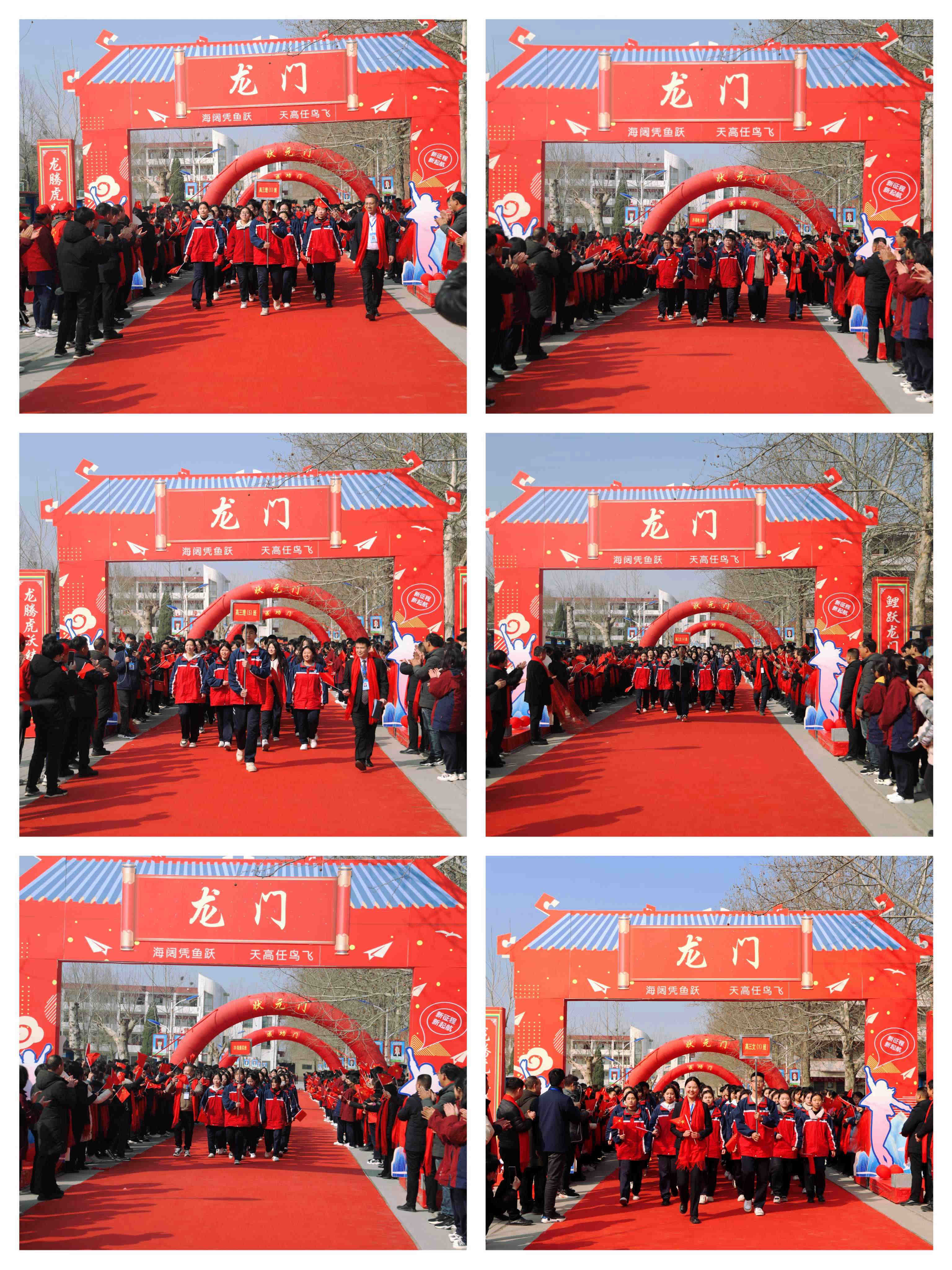 古时状元郎要跃三门,一跃成功门青云直上,二跃状元门前程似锦,三跃龙门鹏程万里!在校领导和老师的引领下,高三学子依次跨越成功门、状元门和龙门,将活动推向了第一个高潮。
