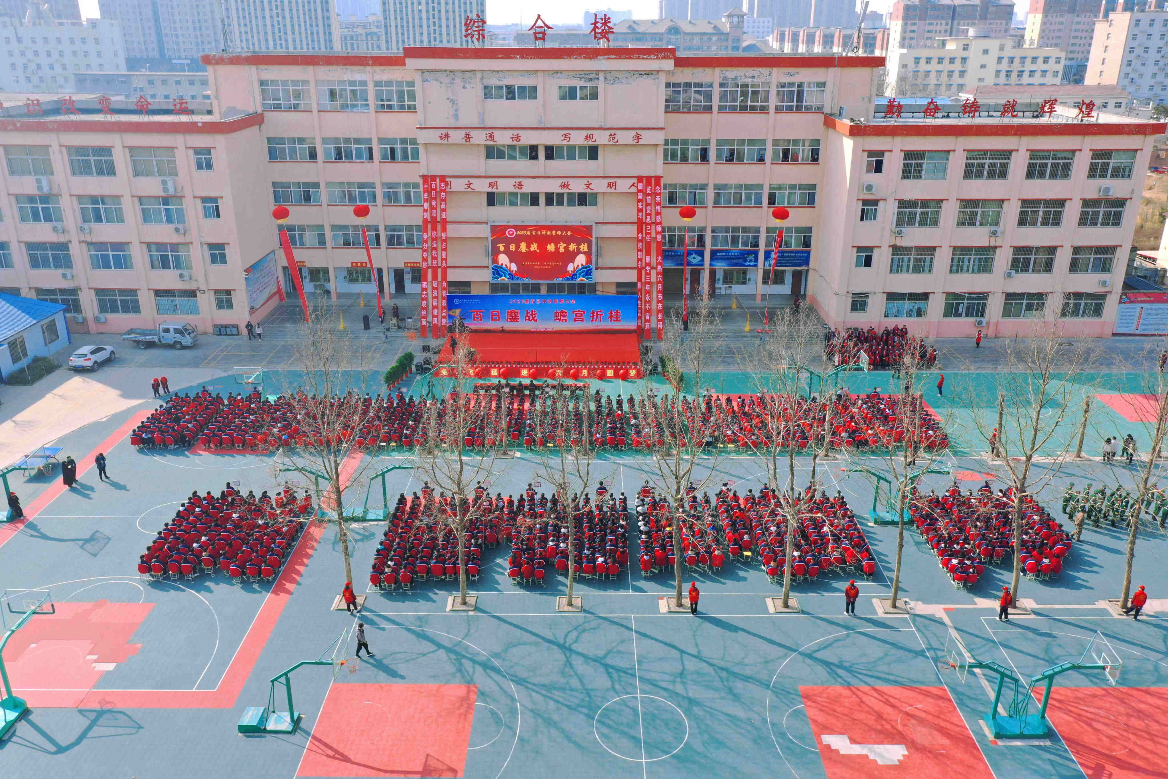 十年磨剑,争分夺秒,砺志凌绝顶;百日竞渡,你追我赶,破浪展雄风。2月27日,是一个阳光灿烂的日子,又是高考百日倒计时节点,为更好提振高三师生士气,激发决战高考的昂扬斗志,县职业中专、县高级中学“百日鏖战 蟾宫折桂”2023届高考百日冲刺誓师大会在学校操场举行。