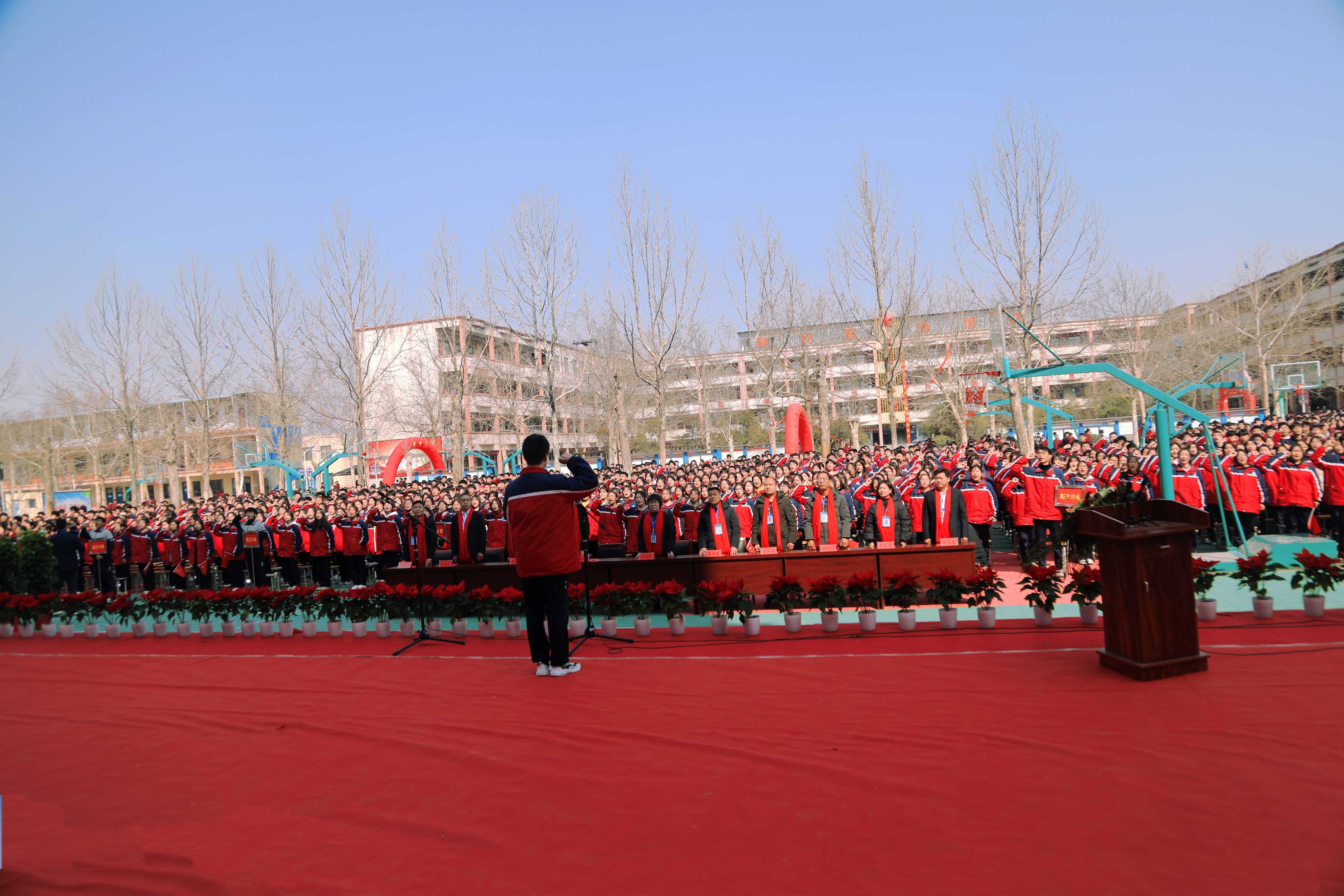 校党总支书记刘鹏鹏为大会做动员报告,刘书记首先代表学校向辛勤耕耘的老师们表示衷心的感谢,向锐意进取的同学们致以亲切的问候。接着,对全体高三学子提出三点要求:一是要调整好自己的心态,不骄不躁地去面对高考;二是要处理好学与思的关系,形成适合自己的高效的学习方法,养成良好的学习习惯,最大限度地提高自己的学习效率;三是要注意劳逸结合。在紧张的复习中有所为有所不为,不断进行自我调节,把自己的身心调整到临战的最佳状态。最后,刘书记希望同学们在这个春意盎然、万物竞相生长的自然之春,在千帆竞发、梦想绽放的人生之春,要以对自己负责、对家庭负责、对社会负责、对国家负责的态度,拼时间、比干劲、讲方法、求效率,以必胜的信心、扎实的作风、坚韧的毅力,忘我学习,奋力拼搏,在今年的高考中鱼跃龙门,金榜题名。
